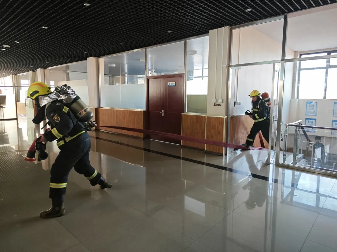 华明消防大队接警后快速响应,抵达现场立即铺设水带、连接水源,协同公司消防组突破“火场”,成功将被困员工转移至安全地带。整个过程中,
